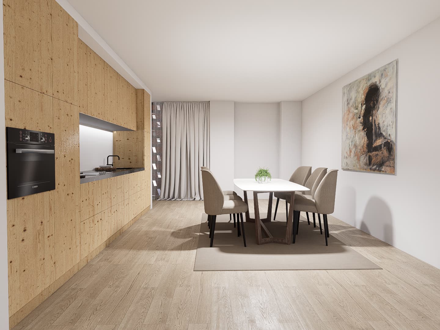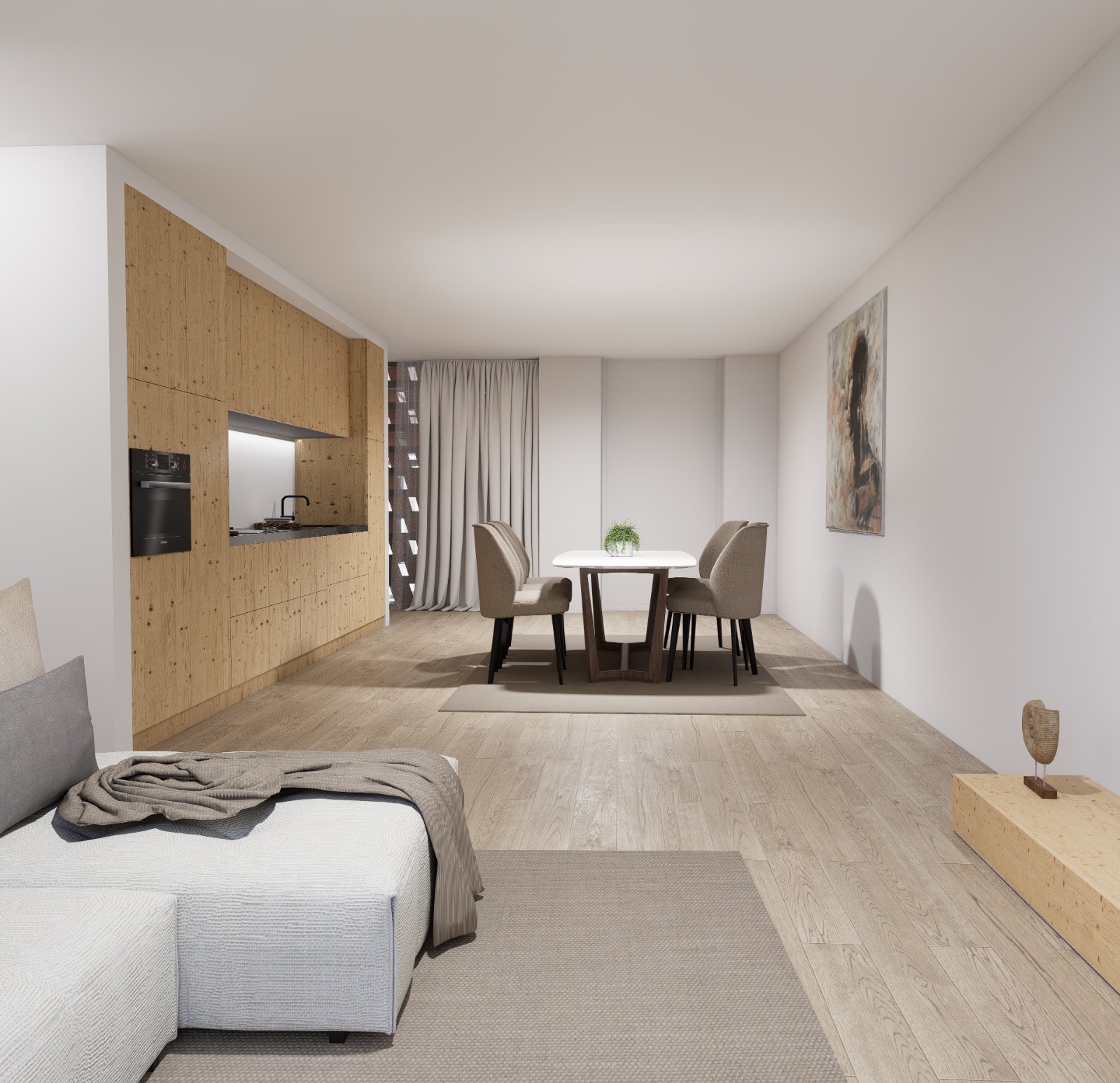 As fachadas amplamente envidraçadas promovem uma ligação fluida entre interior e exterior, enquanto o design eficiente e intemporal convida a uma vivência simples, luminosa e equilibrada. A sala e cozinha tem ampla entrada de luz e dar mais conforto.